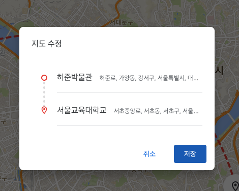지도: 지도 상에서 한 지점에서 다른 지점까지을 이어 표시합니다.