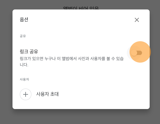 - 링크 공유: 링크 공유 기능을 켜면 URL만 안다면 누구나 이 앨범에 접근할 수 있습니다. 여기서 조심해야할 점이 있습니다.